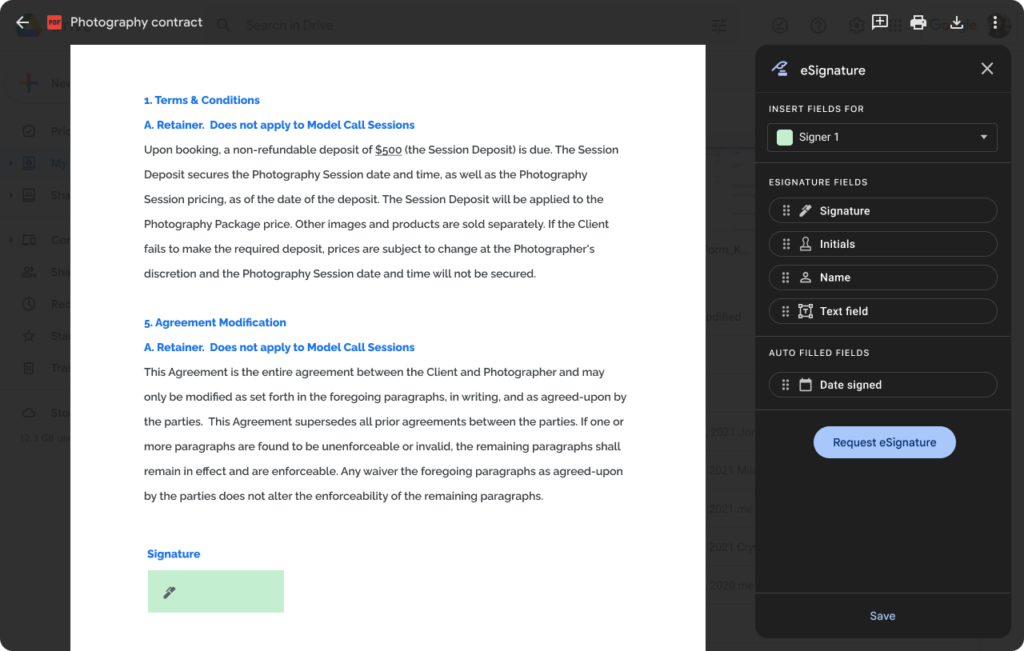 eSignature was al beschikbaar voor Google Docs, maar nu is deze functionaliteit uitgebreid naar PDF’s. Dit maakt het nog eenvoudiger om handtekeningen aan te vragen en te verzamelen zonder Workspace te verlaten.